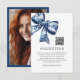 Stylish Trendy Blue Floral Bow Photo College Fund Enclosure Card you can personalize with your graduate's photo, name and other heartfelt details. Celebrate your graduate's milestone with this college fund enclosure card, featuring a blue floral ribbon bow trimming the front and your graduate's photo on the back. Plus, your guests can scan the QR code to contribute to the graduate's college fund. Simple. Stylish. Elegant. Also perfect for your class of 2026 college graduate who is entering a specialty program, such as medical school, law school, masters or doctorate programs etc.