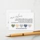 Estas sencillas y distintivas tarjetas fueron diseñadas para que coincidan con otros elementos de una creciente suite de eventos que cuenta con un moderno tipo de letra de escritura informal sobre un fondo sencillo que puede cambiar a cualquier color que desee. El tipo de letra de las características se utilizó para crear un encabezado que decía "nuestros colores", ligeramente rotado y colocado en la parte superior izquierda. Utilice los campos de plantilla para reemplazar mis mensajes y agregar sus propios detalles a los espacios disponibles. Cada uno de los gráficos de pinceladas de brocha, que sutilmente dan una forma cardíaca y se colocan en la parte inferior, se puede cambiar a cualquier color que prefiera. // 158 //