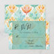 Tarjeta De Recepción Tangerina Turquesa Floral Abstracto Respuesta de B