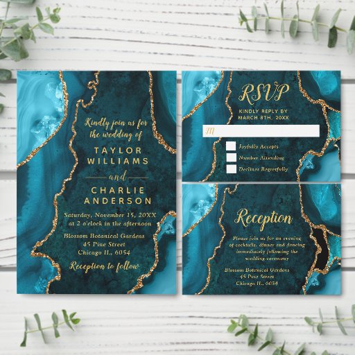 Teal Blue and Gold Agate Marble WeddingDiseñado por Kirsty W
