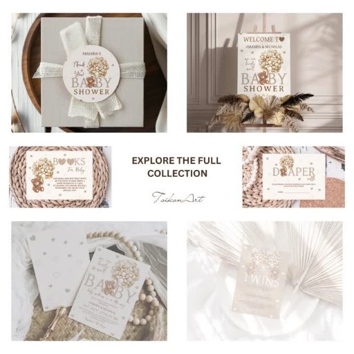¡La adorable tarjeta de raqueta de pañales de pañal beige marrón claro TsikonArts! Oso de peluche escondido entre el beige suave y el oro marfileño, rodeado de un fondo de ensueño de corazones marrones color pastel y color marrón claro. 🧸 Es la forma perfecta de darle un toque bohemio. ✨ No olvides explorar la colección completa.
