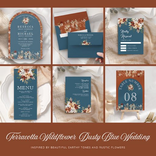 Terracotta Wildflower Dusty Blue Wedding Diseñado por Shabbir D