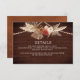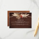 Elegante carta de clausura con hermosas flores y rústico pasto de pampas sobre un rústico fondo de madera de granero con luces de cuerda.