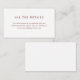 Estas minimalistas y elegantes tarjetas de alojamiento de detalles de invitados presentan un color rojo oscuro, un texto marrón sobre un fondo blanco, para un aspecto sencillo y elegante. Simplemente introduzca los detalles relativos al alojamiento del hotel, las direcciones de conducción y otra información importante para sus huéspedes.
