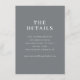 Esta tarjeta de inclusión para bodas presenta un diseño minimalista con un fondo gris carbón sólido, creando una estética elegante y moderna. La disposición es simple y equilibrada, utilizando un amplio espacio negativo para resaltar la tipografía serif blanca centrada que guía a los invitados a detalles adicionales en el sitio web de su boda. Las líneas limpias y la alineación precisa mejoran la legibilidad mientras mantienen un tono formal y sofisticado, perfecto para transmitir información esencial de manera elegante. Ideal para parejas que buscan un aspecto refinado y sin desorden, esta tarjeta añade un toque de clase a cualquier suite de invitaciones de boda.