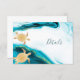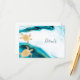 Tortugas tribales doradas sobre una tarjeta de detalles de fondo de mármol de tinta teal blanca.