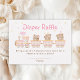 Esta bonita y caprichosa tarjeta de cubierta de rifas de pañales cuenta con un tren acuarela de color rosa pastel, amarillo y marrón con adorables osos bebés. El texto combina el guión manuscrito y las fuentes serif para un aspecto elegante y moderno. Es perfecto para una ducha de bebé con temática de oso o tren.