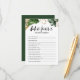¿Quién conoce mejor a mamá? Agrega esta tarjeta divertida y lúdica a tu ducha de bebé. Tiene hojas tropicales con acentos tropicales de Relieve metalizado de oro falso. Personalice agregando un nombre y un evento en la parte posterior de la tarjeta. Esta tarjeta de juegos es perfecta para el verano y para las duchas de bebé temáticas tropicales.