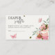 Un bebé está preparando un té fiesta de jardín con una tarjeta de envoltura de canapé neutra para bebés con ducha de pañales. Esta ducha de bebé neutra en cuanto a género incluye té con flores y mariposas rosas de color rosa oscuro con una taza con fondo de textura de papel, la parte trasera de la tarjeta tiene un color verde menta con tés en lino.Un tema rústico perfecto para el fiesta de té con ducha de género neutro.