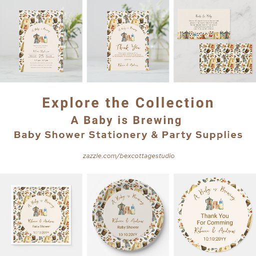 Celebra la llegada de tu pequeño con nuestra encantadora "A Baby is Brewing" (Un bebé se está preparando). Con tonos cálidos y acogedores, adorables acuarelas y ilustraciones de café, este diseño combina a la perfección la elegancia con un toque de encanto inspirado en la cafeína. Ideal para los amantes del café, este lugar marca el tono perfecto para una celebración reconfortante llena de amor, risas y momentos dulces. ☕ 💕