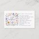 Animar los momentos dulces de la historia con esta tarjeta de presentación con el tema de las flores silvestres "Libros para Bebé". Diseñada para conformar la colección de duchas para bebés "A Little Wildflower Is the Way", esta tarjeta tiene flores de color suave en tonos pastel y un mensaje dulce que pide a los clientes que traigan un libro en lugar de una tarjeta. Es la manera perfecta de ayudar a los futuros padres a construir una biblioteca significativa para su pequeña. Personalizar la redacción o usa el poema preescrito para adaptarse a tu estilo de ducha de bebé. Ya sea que esté hospedando un boho, un jardín o una ducha de bebé rústica con temática floral, este entintado que combina a la perfección le añade un toque cuidado y coordinado a sus invitaciones.