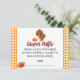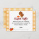 El diseño de esta tarjeta presenta el tema "La pequeña Turquía está en camino" de Acción de Gracias Turquía con un lindo pavo, calabazas de temporada de otoño y el naranja amarillo de la frontera de gingham blanca en colores cálidos de otoño. De vuelta en un patrón ininterrumpido de gingham. Texto, fuentes y colores fácilmente personalizables y modificables.