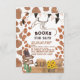 ¡Trae un libro! Libros rústicos de vaqueros de vaca marrón occidental para la ducha de bebé con un tema rústico del desierto, con cráneo boho de vaca, lasso de vaquero, banderas de campo marrón, gorra de vaquero, rueda de madera rústica, pila de heno, ramo de girasoles, cactus verdes del desierto, signo de madera con salón y caballos (el texto puede ser editado) y patrón de vaca marrón silvestre silvestre. ¡Ensilla y únete a nosotros para una ducha de bebé! ¡Un pequeño vaquero está en camino!