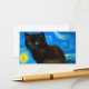 Cartas de clausura con un gato Van Gogh al estilo de Starry Night! Un gatito negro mullido se perfila sobre una mesa contra un cielo azul nocturno y una luna amarilla. ¡Un regalo perfecto para los amantes del gato y los coleccionistas holandeses de arte!