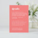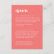 Esta retro tarjeta de gabinete de detalles de boda rosa caliente de verano es perfecta para un boda colorido. El exclusivo diseño vintage moderno presenta una vibrante tipografía en blanco y rosado con divertidos tonos de groovy.