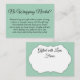 Tarjeta De Recepción Verde simple sin envolver la ducha de novia necesa