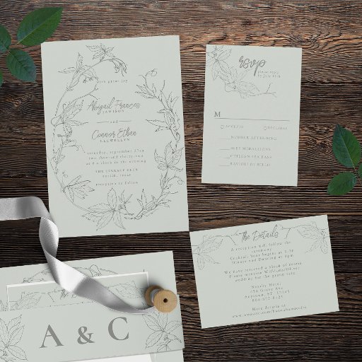 Tarjeta De Recepción Vines minimalistas dibujados a mano Sage Green Gra