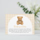 A rustic themed baby shower "We Can Bearly Wait" featuring cute preppy bear wearing luxury designer plaid outfit in brown, beige colors and gingham background. You can easily personalize this with your details.