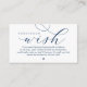 Celebrate the beginning of your journey together with our elegantly crafted "honeymoon wish" in Navy Blue theme, wedding invites enclosed card. Featuring a sophisticated blend of modern script and romantic allure, each card is meticulously designed to convey the essence of your special day. Perfectly suited for couples seeking a unique way to share their honeymoon dreams, this card invites your loved ones to contribute towards unforgettable experiences. Whether nestled in a luxurious envelope or presented alongside your wedding invitations, our card adds a touch of enchantment to your celebration, promising cherished memories that last a lifetime. Designed by TeeshaDerrick.