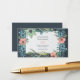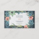 Una bonita tarjeta de recinto boda que tiene el diseño de un marco floral con hojas sobre un fondo oscuro, en un estilo de aguamarina oscura, ilustraciones texturados, acuarela y colores vibrantes de azul frío, salmón y verduras.