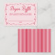 Add a playful Valentine’s touch to your celebration with this baby shower diaper raffle card from the Whimsical Little Sweetheart Valentines Baby Shower collection. The design features “Diaper Raffle” written in handwritten red script against a soft pink background, with space for custom raffle instructions and a line for guests to add their name. A hand-drawn ribbon frame with small red heart accents surrounds the layout, giving the card a charming, whimsical feel. The back of the card is finished with coordinating pink and red stripes for a cohesive look. Sweet, festive, and easy for guests to use, this diaper raffle card is a lovely addition to a sweetheart-themed or Valentine baby shower.