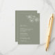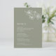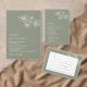 White floral line art flowers on a sage green background. Matching wedding invitation available.