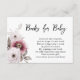 White Plum Floral Books for Baby Shower Enclosure Card: Invite guests to bring a special book for the baby with this charming enclosure card. Featuring delicate white and plum florals, this card is perfect for adding a touch of elegance to your baby shower invitations. The soft color palette and graceful design make it a memorable keepsake for the occasion.