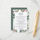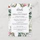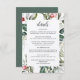 Este delicado borde de vegetación acuática tiene colores Navidades tradicionales, verde bosque, verde oliva y rojo arándano sobre blanco brillante. La palabra "detalles" aparece en la parte superior con los detalles del boda que quedan directamente debajo. Todo el texto se puede editar para adaptarlo a las necesidades de su evento. La parte posterior es de color verde y coordinado.