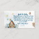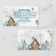 Build the baby's library! This sweet enclosure card asks guests to bring a favorite storybook instead of a greeting card. features a cozy watercolor gingerbread house topped with snowy icing, surrounded by a winter forest of pine trees and icy blue floral accents. Whimsical watercolor illustration with a rustic winter vibe Ideal for winter baby showers hosted in January, February, or March Icy blue, snowy white, and warm gingerbread