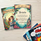 Esta elegante tarjeta de gabinete boda de estilo cuento de hadas es perfecta para un boda moderno. El diseño retro incluye un bosque vintage con encanto, un ilustracion de castillo y una caligrafía negra en un fondo temático de cuentos.