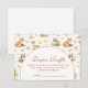A charming woodland design featuring softly illustrated forest animals like foxes, deer, and raccoons nestled among delicate greenery and subtle natural textures. The warm neutral palette paired with the elegant arched layout creates a cozy yet refined aesthetic that feels both playful and timeless, making it perfect for a nature-inspired baby shower with a gentle, storybook touch.