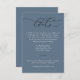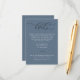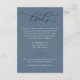 Esta tarjeta de gabinete Details está diseñada para emparejarse perfectamente con la suite Elegant Serenity Wedding Invitation, una encarnación atemporal de la refinada belleza que capta la esencia del amor y la unidad. Esta suite de invitados es una obra maestra de diseño, con una exquisita combinación de elementos que armoniza perfectamente la estética moderna con la sofisticación clásica. Esta tarjeta de gabinete de detalles incluye un gráfico de "detalles" de escritura bellamente embellecido y un lugar para incluir detalles adicionales de su boda, como alojamiento o direcciones, junto con un lugar para incluir la dirección de su sitio web boda. El fondo azul polvoriento neutro se coordina con la suite de invitación Elegant Serenity and Script Wedding, pero se puede cambiar fácilmente para que coincida con tus colores bodas personales.