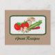 Grandes gráficos de verduras resaltan esta carta de receta del tamaño de la tarjeta postal. Hace una gran idea de regalo cuando se agrega a nuestro encuadernador o delantal de recetas a juego. Las líneas de la parte posterior están listas para que escribas tus recetas favoritas en ellas.