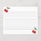 Cerezo en la parte superior de la cinta de la ducha de novia tarjetas de envoltura, cerezas adorables tarjetas de la receta de la ducha de novia, tarjetas del recinto de la ducha de novia