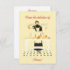 Ilustracion vintage de mujer en delantal preparando dulces en su cocina anticuada en blanco y negro. Tarjeta de receta. Retro. Negro, blanco, crema, rojo. Personalizar.