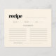Una tarjeta simple y minimalista para escribir una receta para la futura novia. Una idea original y linda para una fiesta de despedida de soltera. Texto y colores totalmente personalizables.