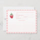 Diseño de tarjeta de receta adornado con una sola fresa dulce y un borde en un estampado vichy rosa y blanco. Tengo invitaciones y otros artículos de papelería en el mismo tema de fresa.