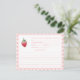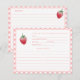 Diseño de tarjeta de receta adornado con una sola fresa dulce y un borde en un estampado vichy rosa y blanco. Tengo invitaciones y otros artículos de papelería en el mismo tema de fresa.