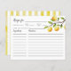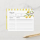 Extraordinaria carta de recetas rústicas para su ducha de novia con tema de limón con ilustracion acuarela de una rama de limón con cítricos. Pídele a sus invitados que llenen esta receta y que los lleven a la novia o a la ducha de boda.