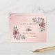 Crea una hermosa tarjeta de receta para la novia con rosas rosadas y vegetación enmarcando los detalles de la receta. Tarjeta de receta floral dorada y rosada. Personaliza fácilmente en línea.
