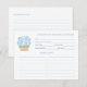 Diseño de tarjeta de receta decorado con una cesta de estilo mimbre llena de hortensias azules. Todos los elementos de acuarela fueron originalmente pintados a mano por mí sobre papel de algodón 100% antes de ser escaneados en forma digital.