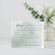 Esta tarjeta de la receta de la ducha blanca de caligrafía es perfecta para una simple ducha de novia. El diseño presenta una hermosa fuente caligráfica en un fondo verde y blanco para embellecer tu evento.