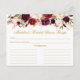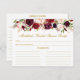 Watercolor Borgoña Marsala Tarjeta de receta de oro floral para ducha nupcial
