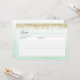 Tarjeta de receta con diseño de purpurina dorado y fondo acuático de menta oscura.