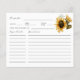 Tarjeta de receta de Sunflower Bridal Shower