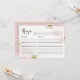 Tarjeta de receta de personalizable con ilustracion acuático de peonías rosadas - perfecta para duchas de bebé y duchas de novias. Forma parte de una suite boda. Área de elementos coincidentes disponible.