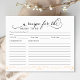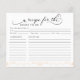 Recopile recetas preciadas de los huéspedes con esta elegante tarjeta de la ducha de novia. Diseñada para adaptarse a tu fiesta de té o a la temática de la novia vintage, esta tarjeta incluye caligrafía clásica, rollo suave y mucho espacio para ingredientes, direcciones y consejos de cocina. Un recuerdo perfecto para la futura novia, ya sea escondida en una caja de recetas o usada como una actividad de ducha. Ideal para: ・ Juegos o keepsakes con fiesta de té para una ducha de novia ・ Temas románticos o de moda para una novia ・ Duchas de bodas de inspiración francesa o de jardín ・ Pareja con invitaciones y juegos de favores a juego
