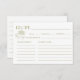 Captura las recetas familiares favoritas con estilo con esta carta de recetas a mano de la colección Fresh Off the Market. Con un diseño único en verde y un original y original tipo de letra, le aporta una divertida y divertida atmósfera a su ducha de novia o brunch boda. Estas tarjetas son perfectas para que los huéspedes compartan secretos culinarios mientras crean un recuerdo inolvidable. Ideal para papelería de boda DIY, actividades de ducha de novia y toques de fiesta personalizados.