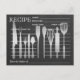 Una tarjeta con pizarra negra, colocada sobre una superficie blanca con fondo personalizado de receta retro en la parte delantera de la postal. Está personalizado con tu inicial y nombre.