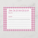 Tarjeta Receta Rosa Gingham. Disponible en muchos colores. Crear una combinación y conjunto de coincidencias. El texto de la tarjeta es opcional.
